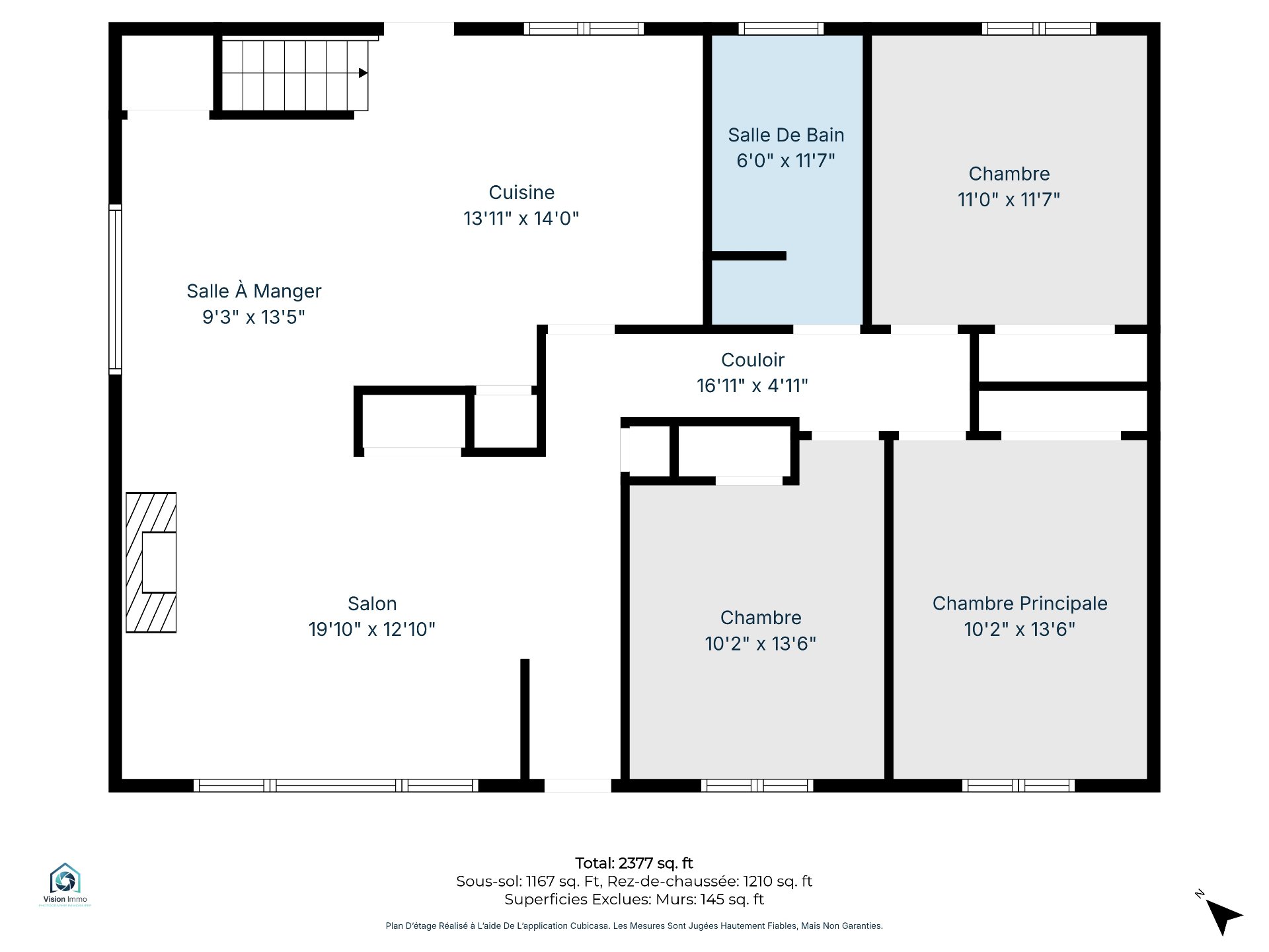 | Salon | 19.10 x 12.10 P | Rez-de-chaussée | Bois |