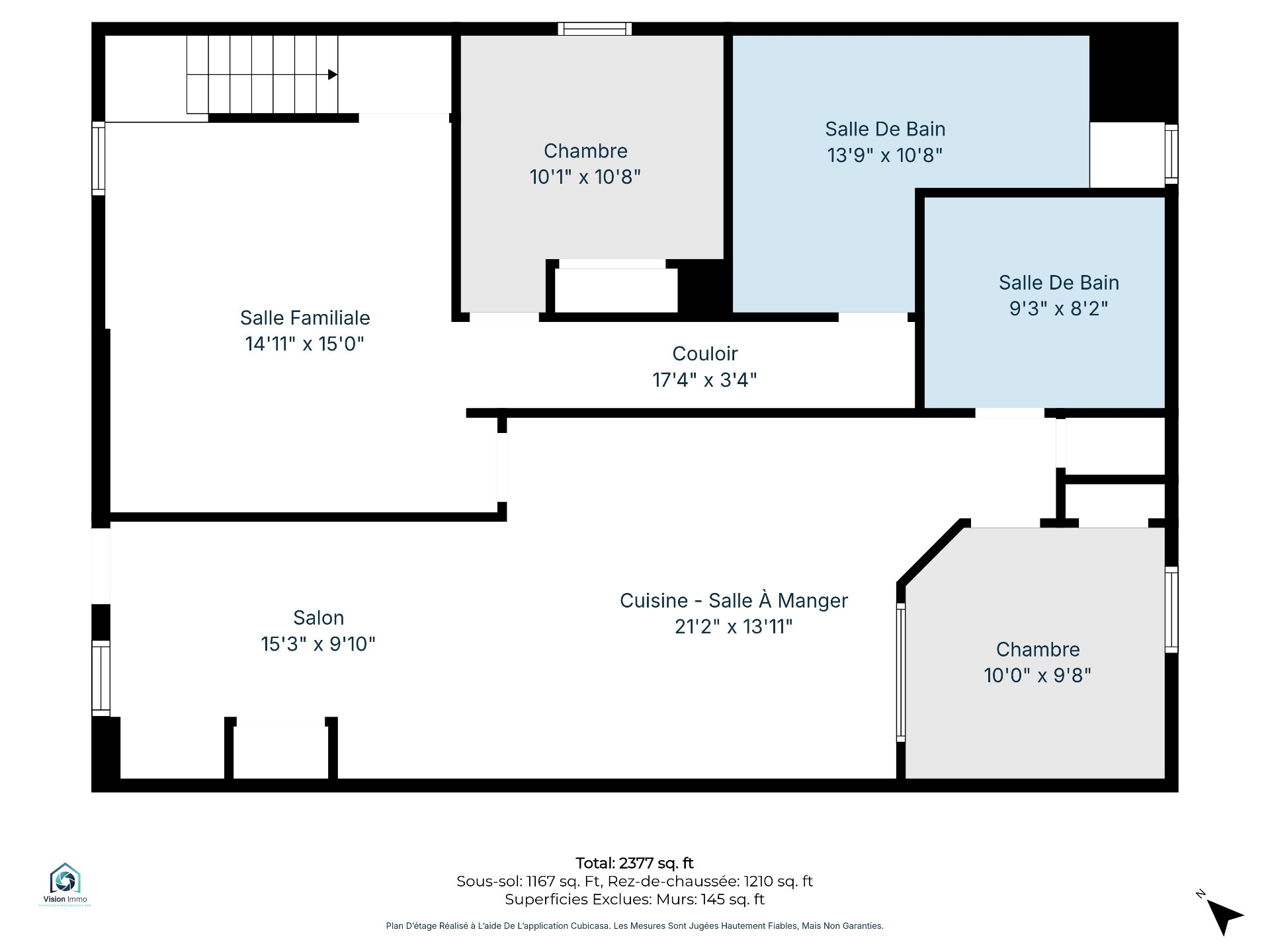 | Salon | 15.3 x 9.10 P | Sous-sol | Plancher flottant |